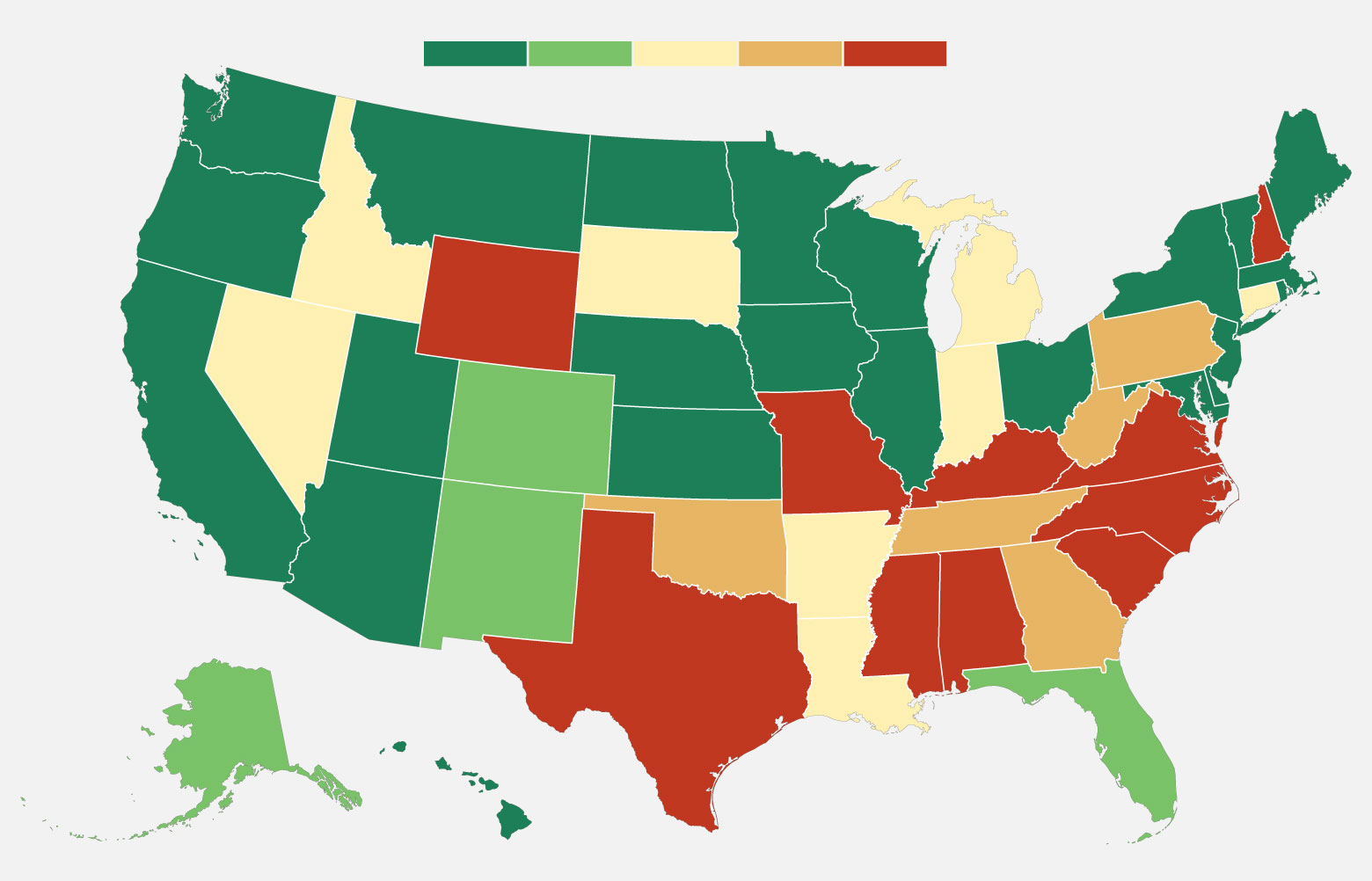 The American Lung Association graded states on whether they'd enacted laws that prohibit smoking in workplaces and public places, including restaurants and bars.