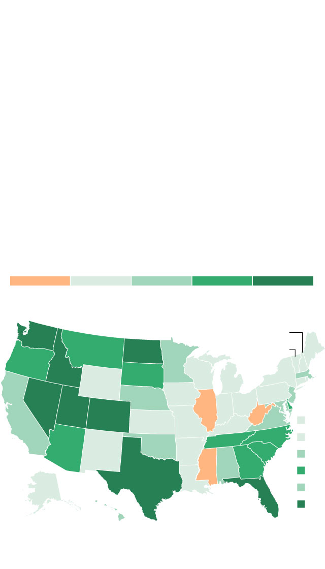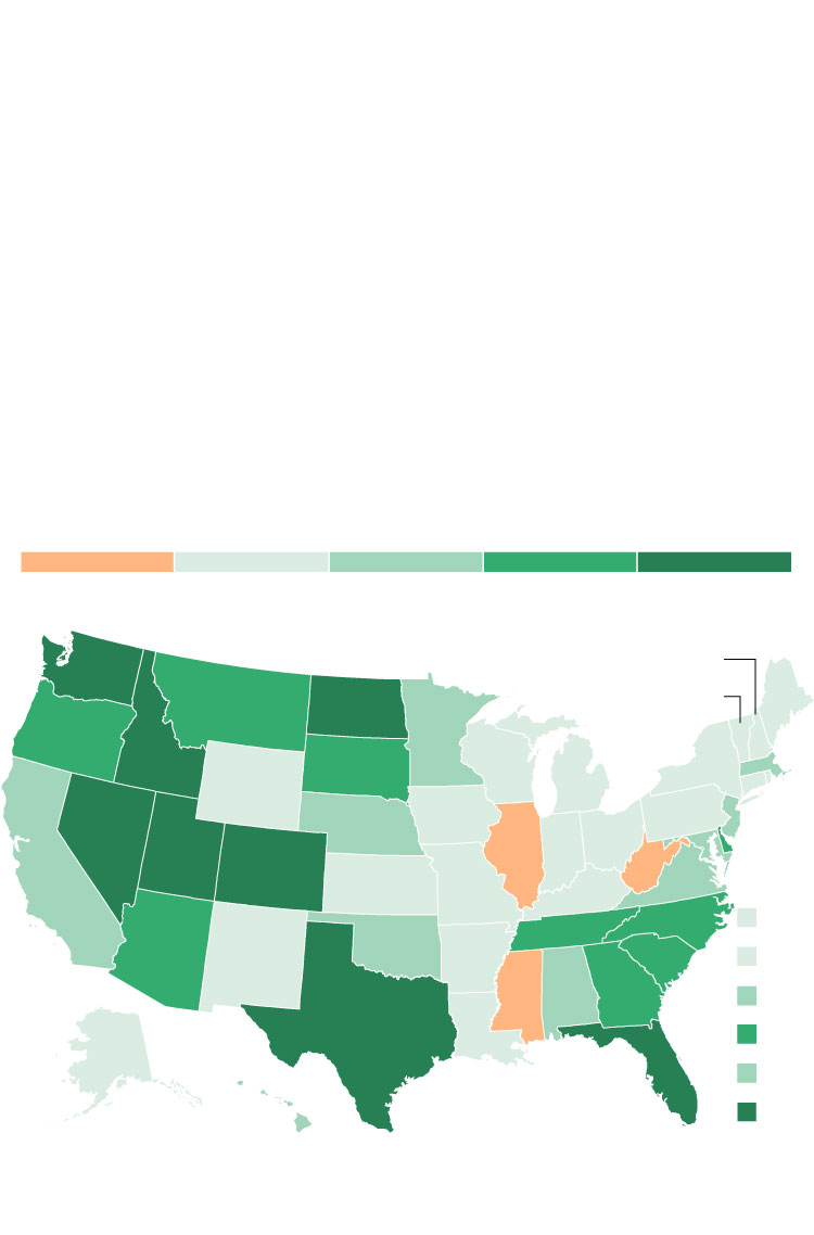 States in the South and West saw big gains over the last decade