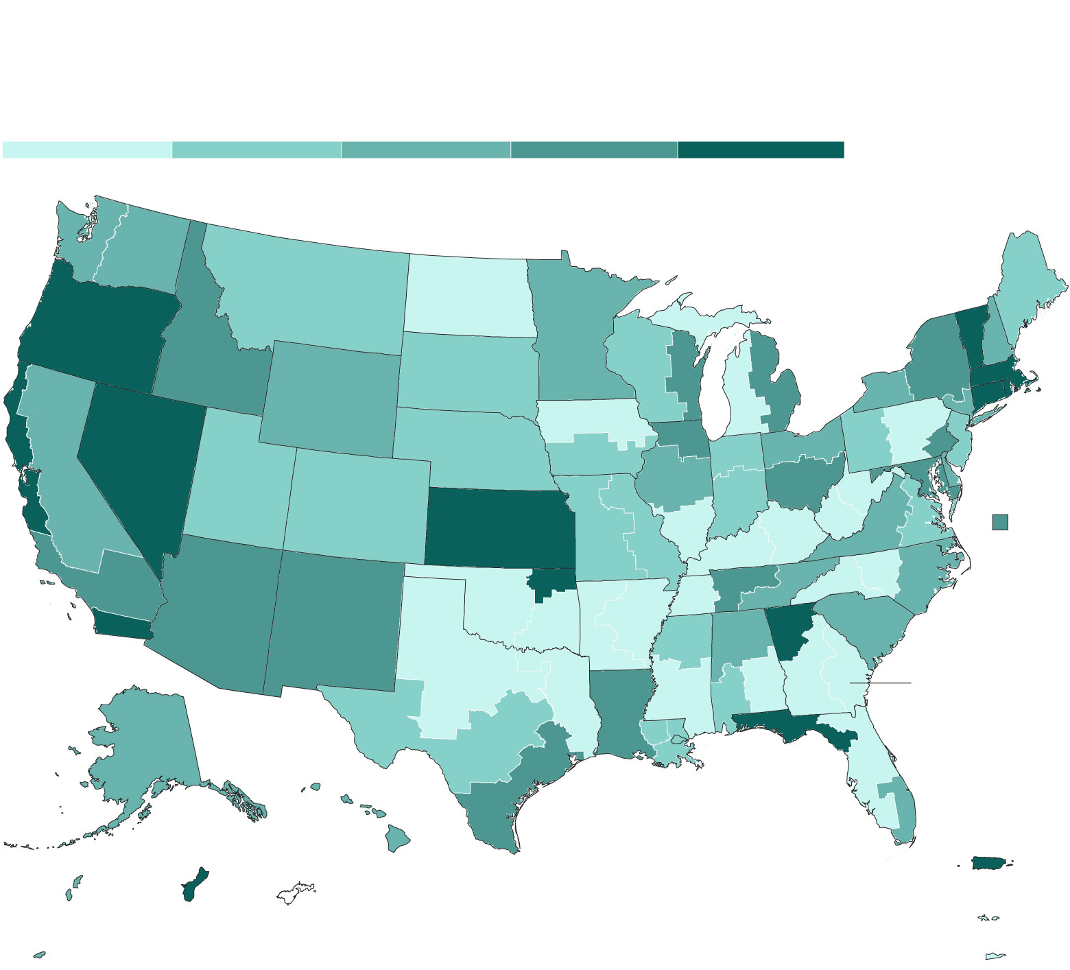 More than 20,000 federal inmates petitioned for compassionate release between January 1, 2020 and June 30, 2021. The percentage of motions that were granted varied dramatically across the country.