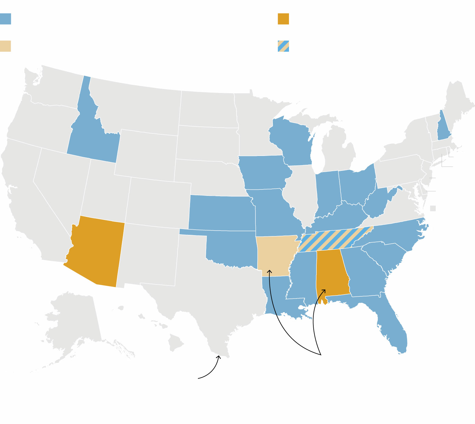 Arkansas and Alabama have both passed laws banning healthcare providers from giving gender-affirming care, but both laws have been blocked from going into effect by federal courts.
