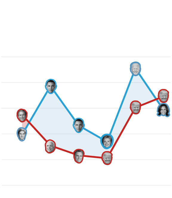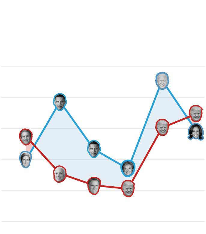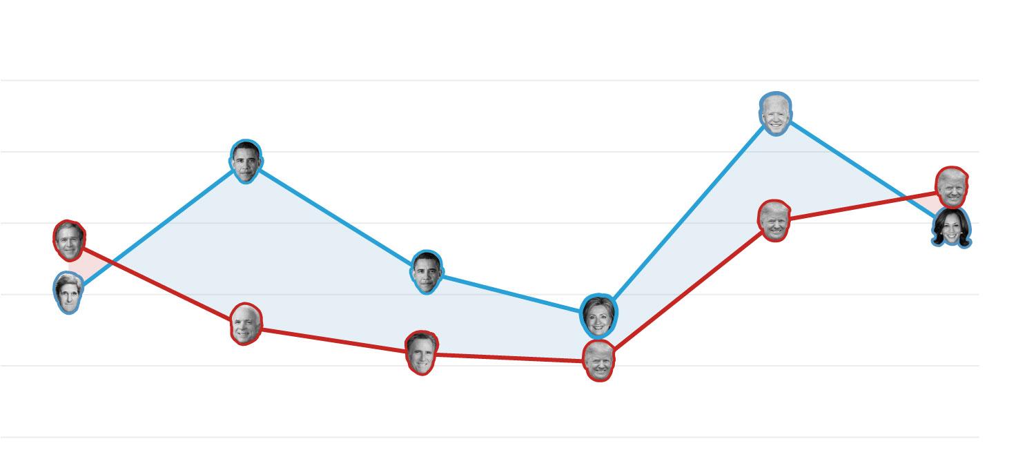 Democratic presidential candidates had won the popular vote for four consecutive elections, until this year.