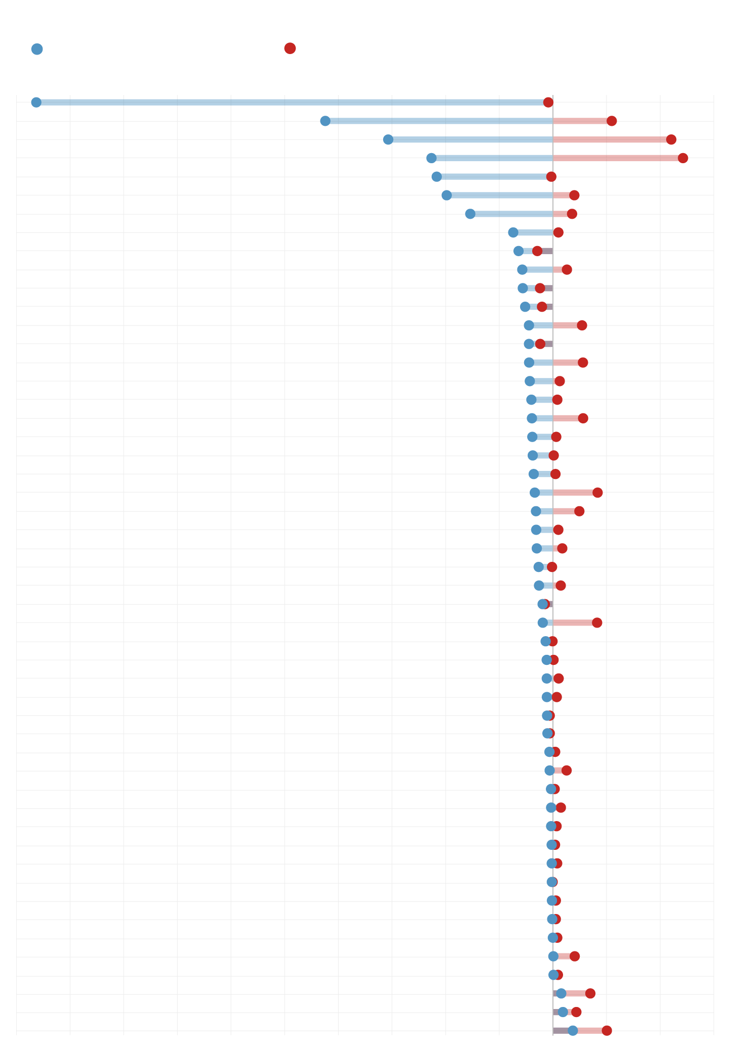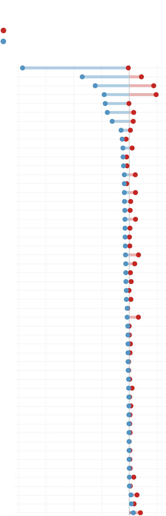 Change in the number of votes per candidate, by state