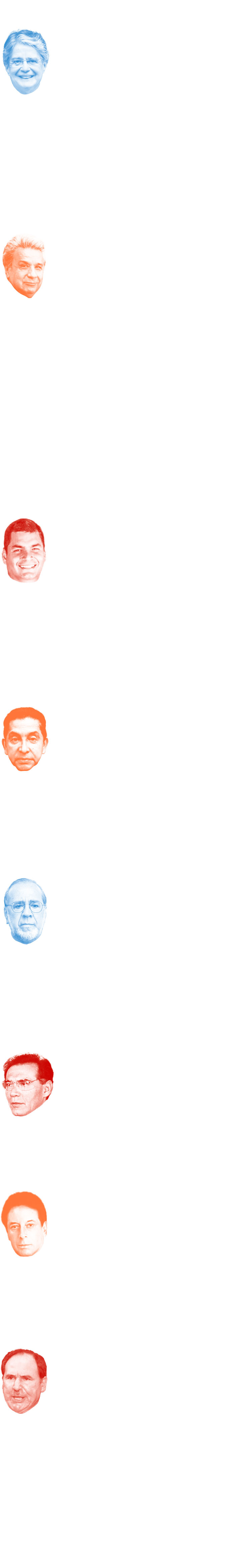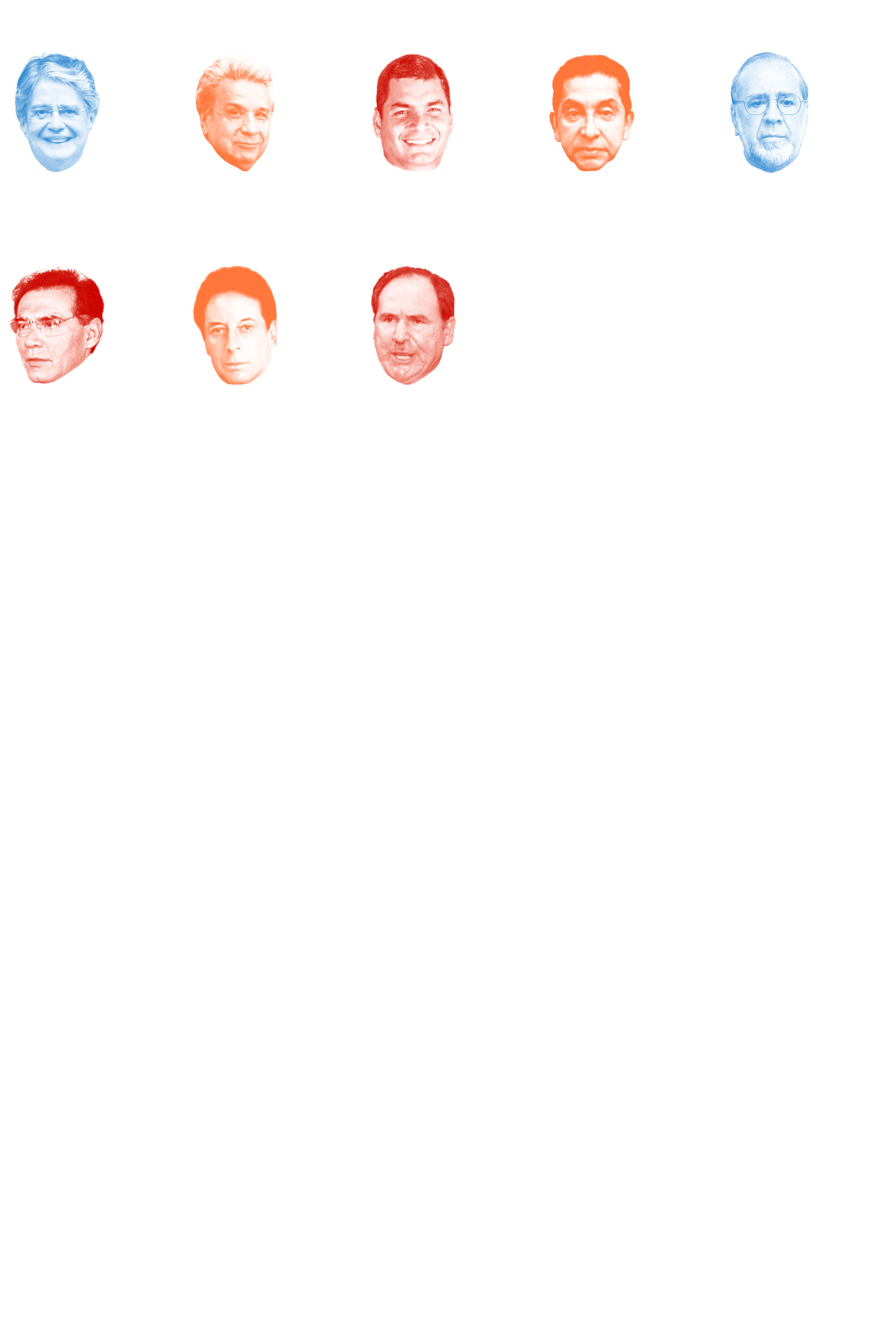 Rafael Correa (2007–2017) fue condenado por un delito de corrupción y sentenciado, en primera instancia, a ocho años de cárcel por el "caso sobornos 2012-2016". Vive asilado en Bélgica.