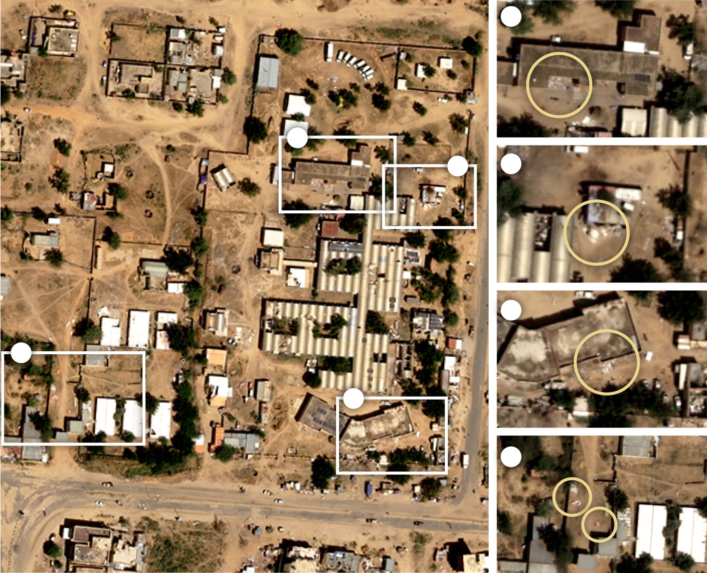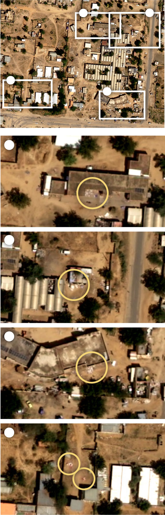 White objects consistent with human bodies are visible in satellite imagery of the grounds of the Al-Saudi Hospital in El Fasher taken on October 28.