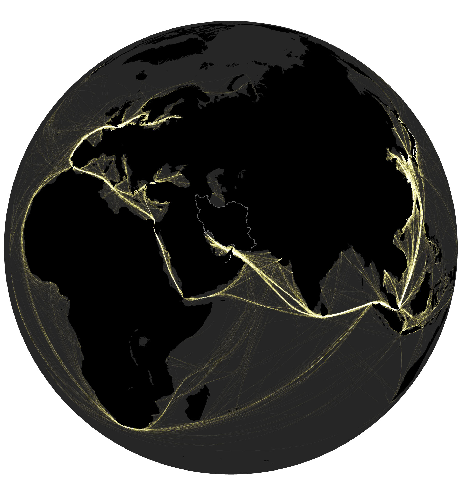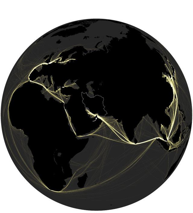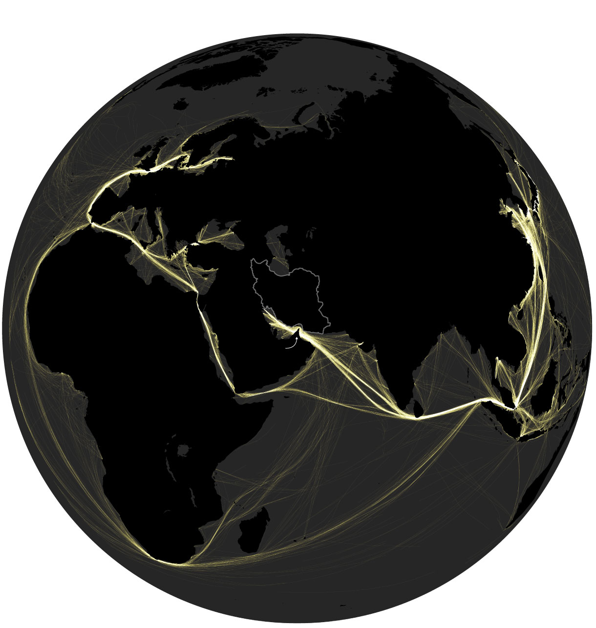 The Strait of Hormuz is one of the world's most important shipping chokepoints connecting the oil-rich Persian Gulf to the rest of the world. Here's what global oil-tanker traffic looked like during a week in January 2026: