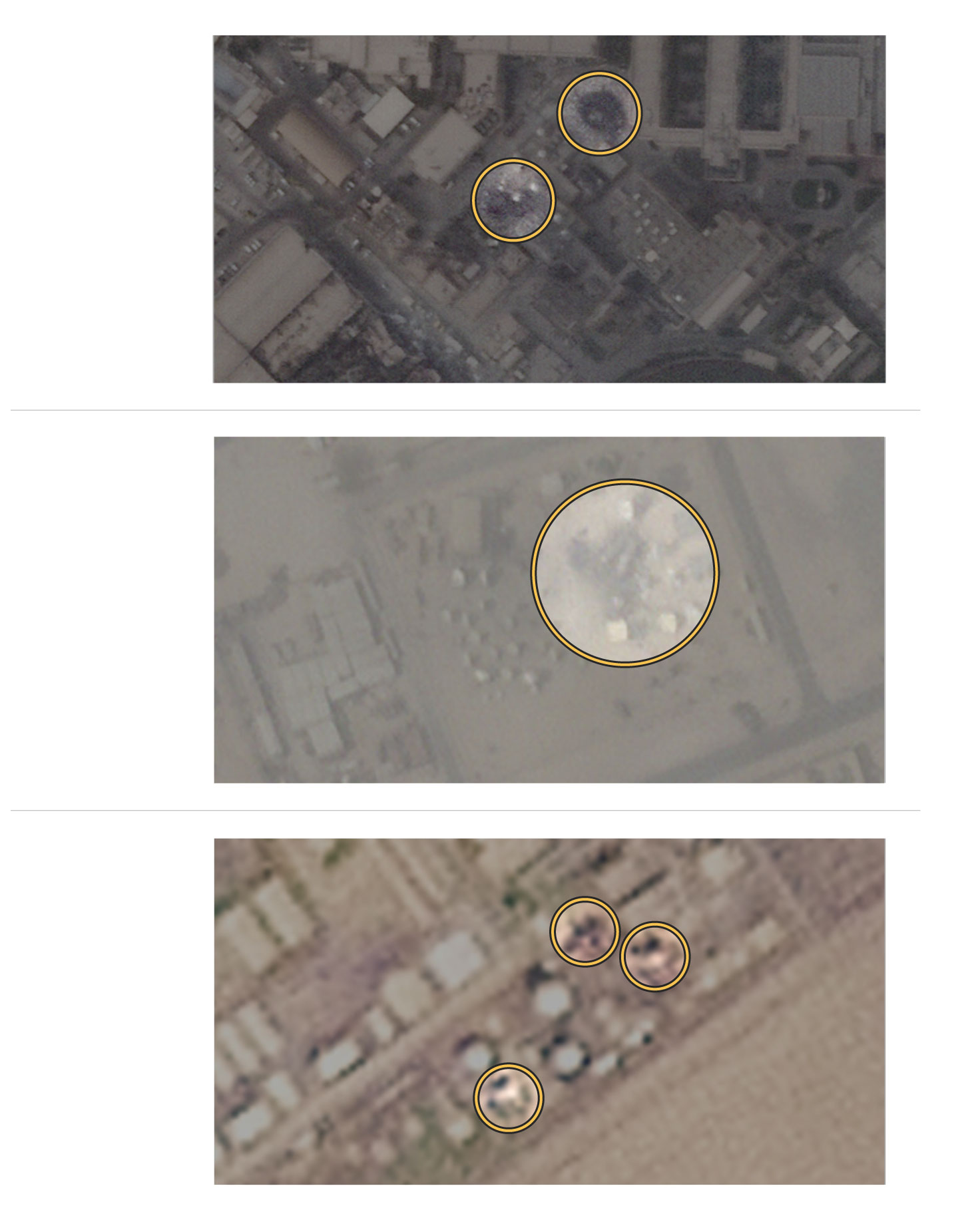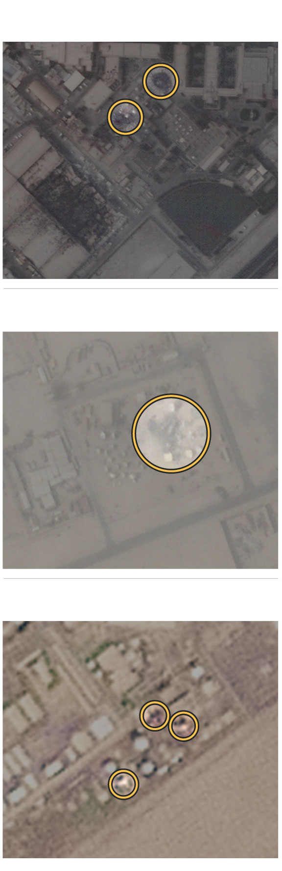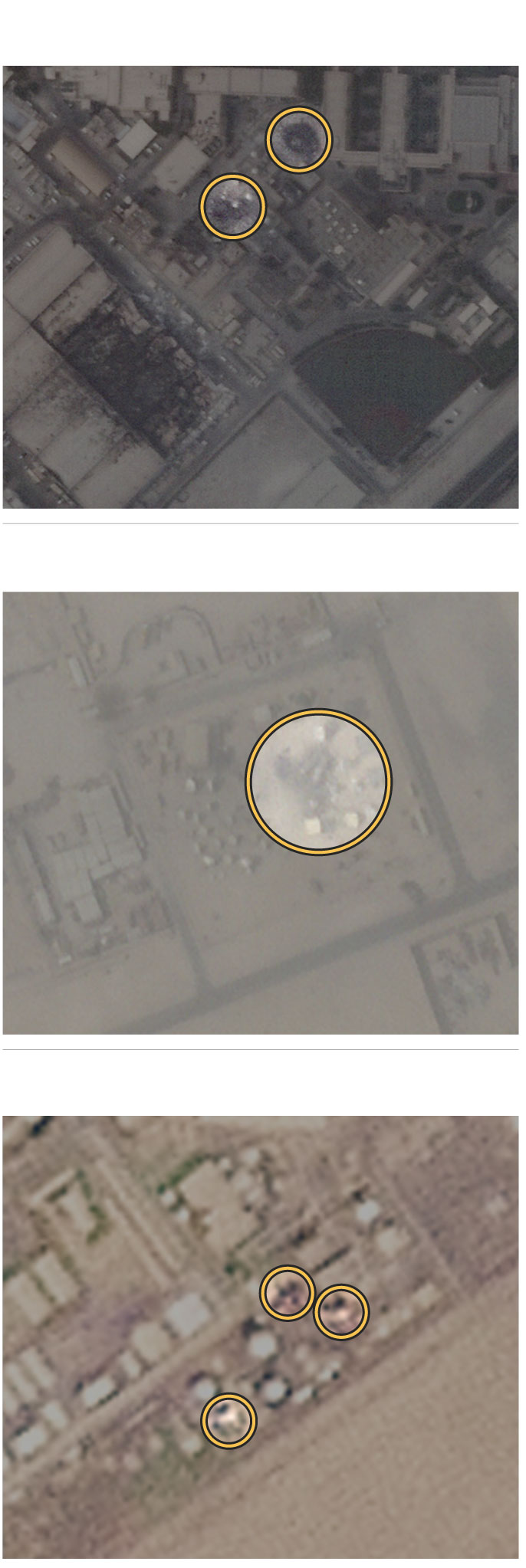 Scorch marks and destroyed satellite dishes