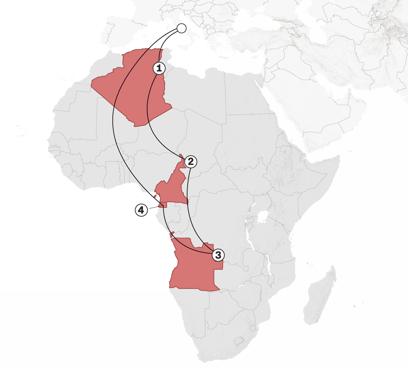 President Paul Biya, 93, is the world's oldest head of state; this will be the fourth time he hosts a pope